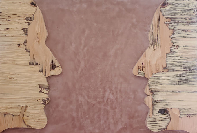 For the last few years, I’ve been exploring the varying ways of manipulating plaster and plywood, materials of the construction industry. Pieces are painterly in composition, yet sculptural in assemblage. The plywood is salvaged building waste that becomes my canvas and design medium. I call them “abscraps and landscraps”. The plaster is used as sky or negative space. This past summer I started incorporating face profiles, to play with the concept of self -reflection. That opened the door to ideas of human imprint on nature and pareidolia, the perception of apparently significant patterns or recognizable images, especially faces, in random or accidental arrangements of shapes and lines. I think as an artist, I create to seek an inner essence of the sublime, to make sense of life.